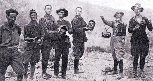 Legionarios españoles con cabezas cortadas de prisioneros rifeños en 1922 (Fuente)