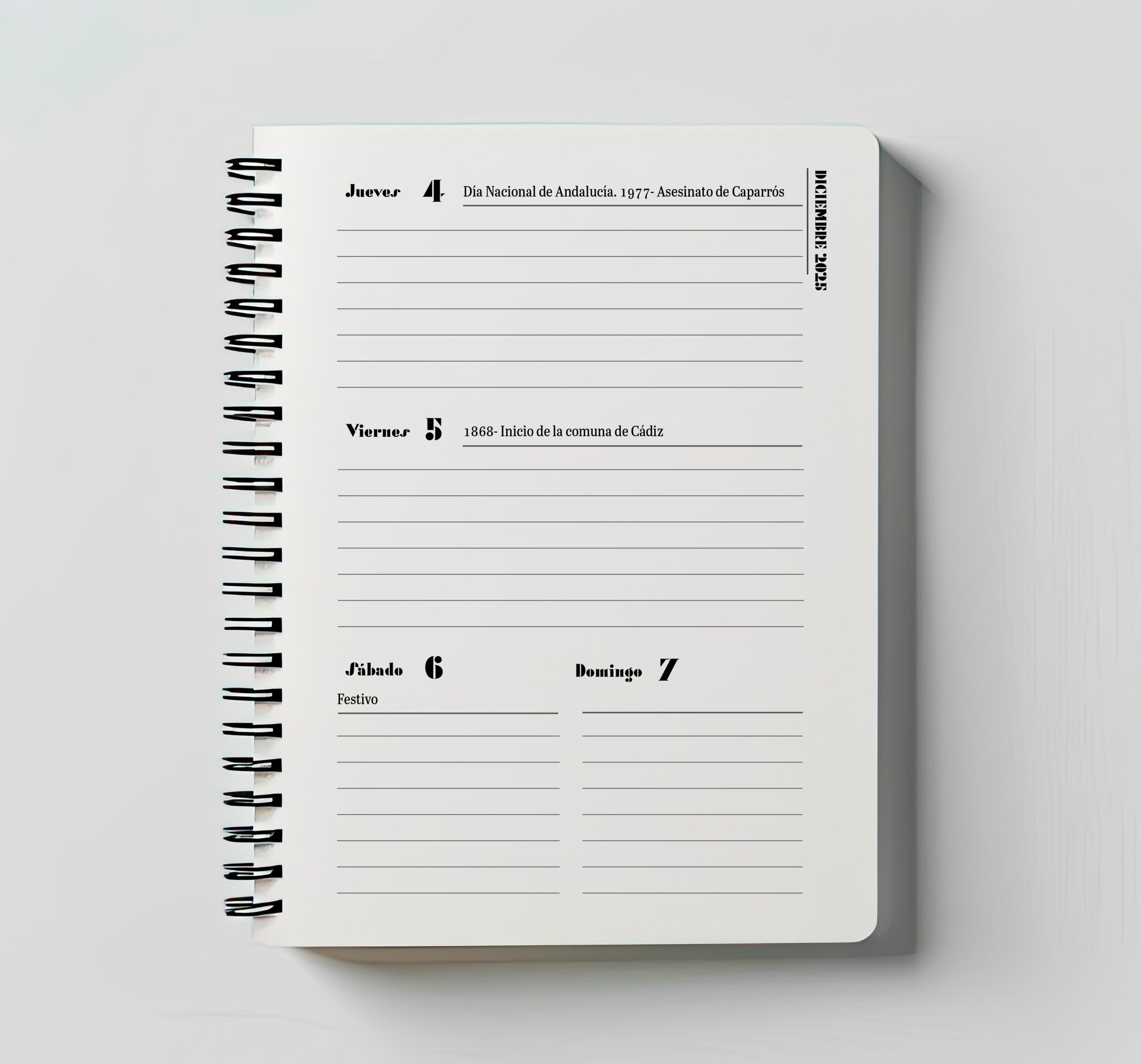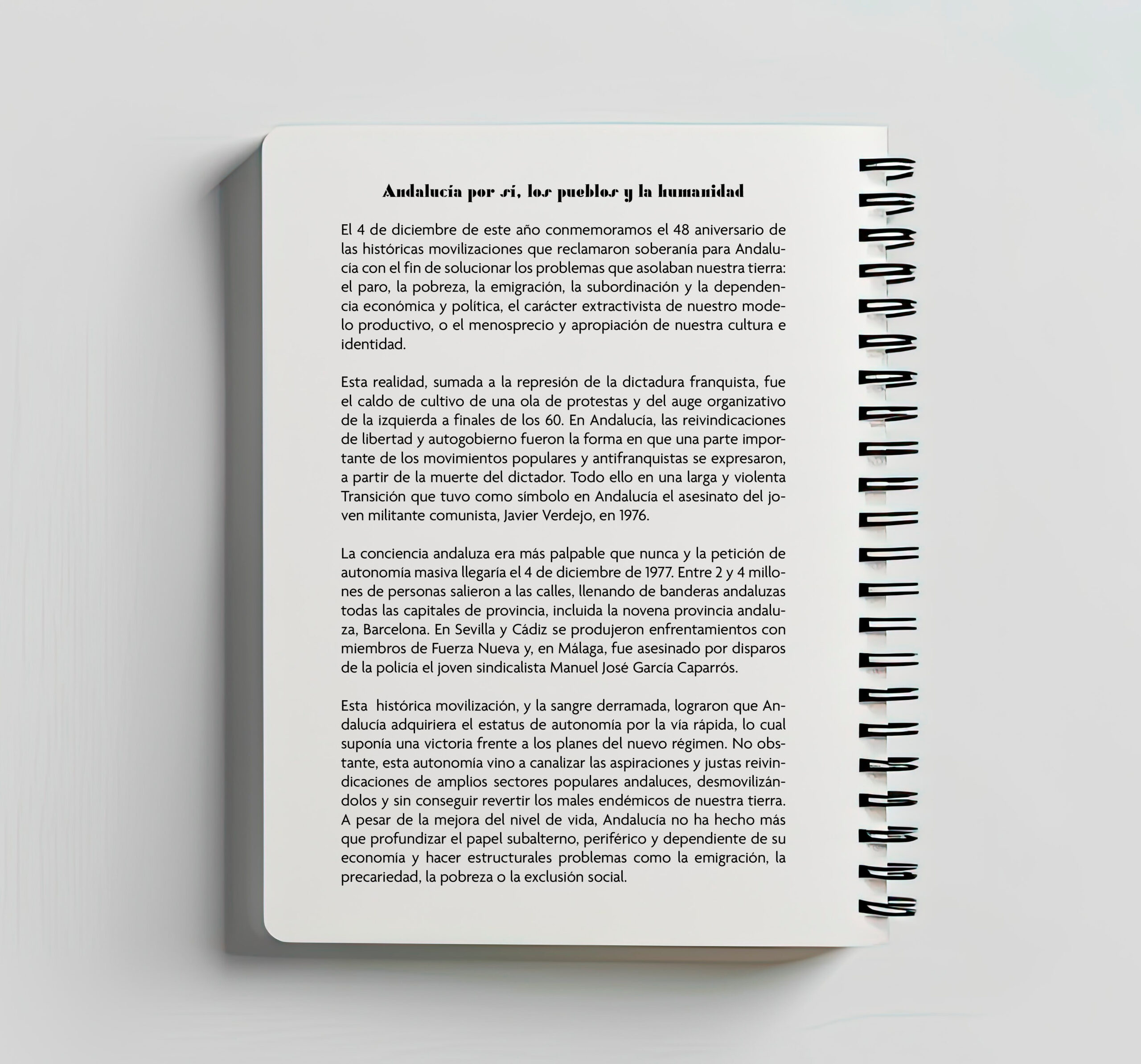 🔥A la lumbre de nuestra historia es una agenda anual editada para el año 2025 por Lumbre. Se trata de una agenda temática que está dedicada a visibilizar los episodios recientes de la historia de las luchas sociales y colectivas de Andalucía desde una perspectiva histórica anticapitalista, social, feminista, inclusiva y diversa. Para ello, hablamos de la desbandá, de la lucha jornalera, de la primera manifestación LGTBI en Sevilla, de la resistencia antifranquista en los montes o de la reivindicación y visibilidad del pueblo gitano andaluz. Cada mes está dedicado a desgranar cada uno de estos episodios y está acompañado por una preciosa ilustración de estas increíbles personas y artistas que han ilustrado nuestros textos: